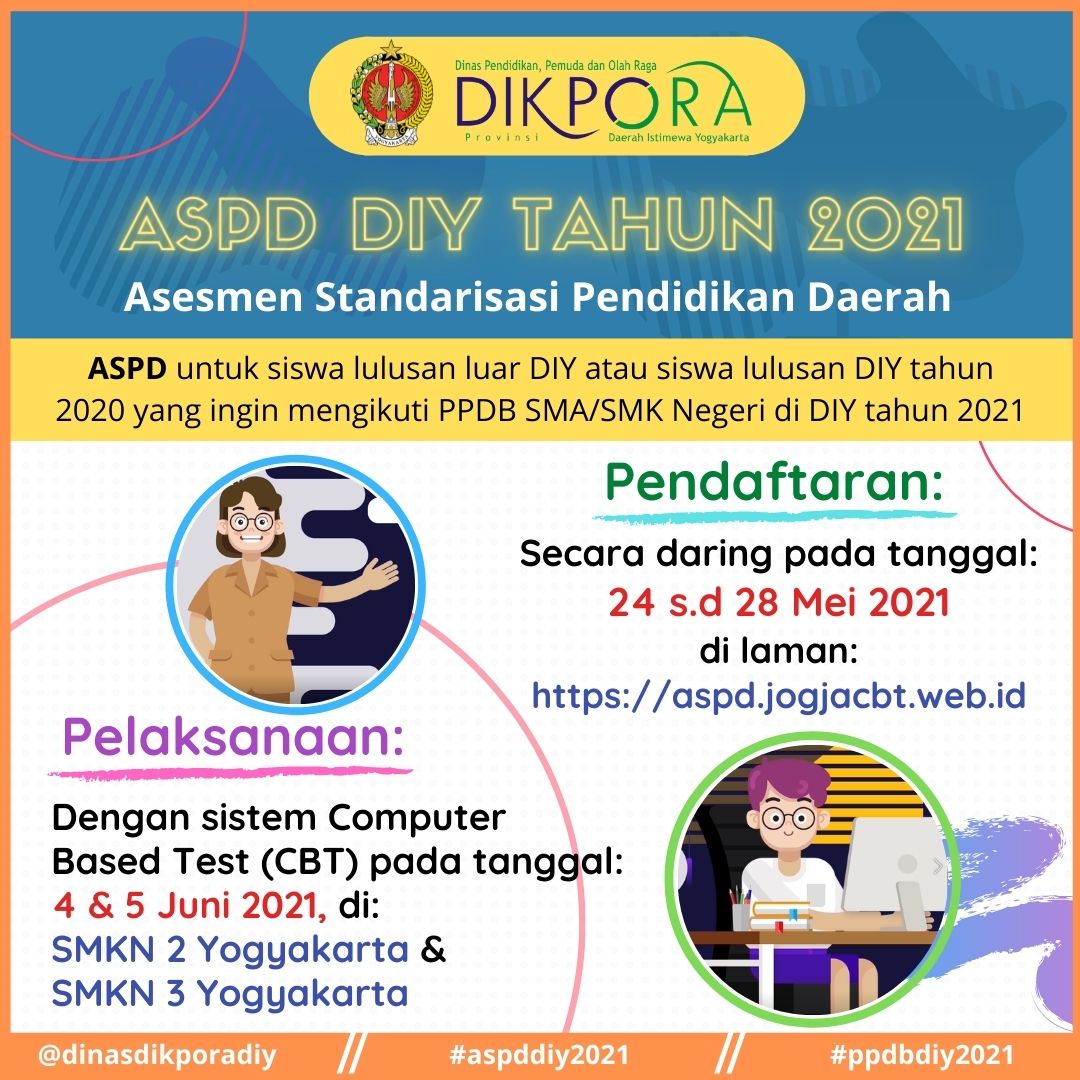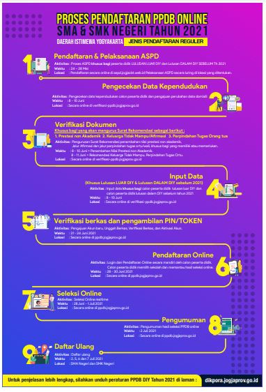 Super User info 21 May 2021 Hits: 454 Info PPDB Khusus Sisw Luar DIY Print Calon siswa Luar Daerah DIY yang ingin mendaftarkan SMA/SMK di DIY WAJIB mengikuti ASPD berbasi CAT di atas
