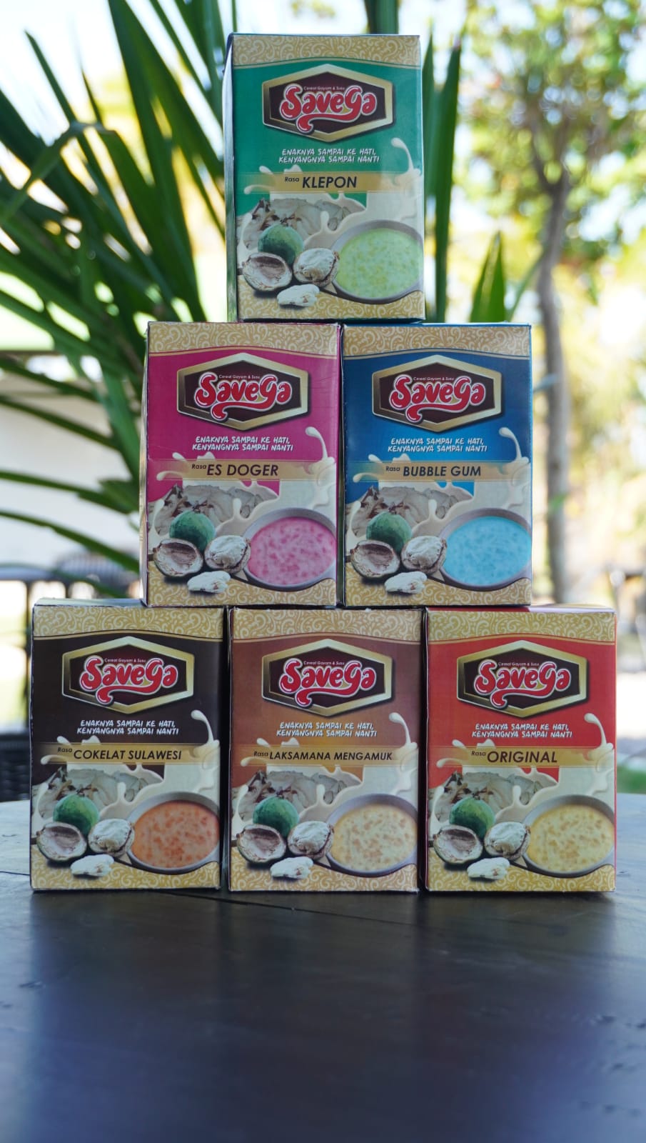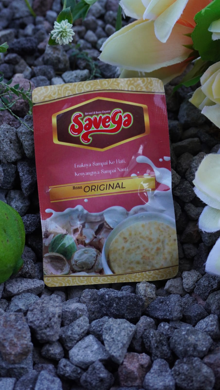 Savega merupakan minuman susu dan sereal berenergi untuk alternatif pengganti sarapan dan pengganti makanan. Savega menggunakan bahan alami yaitu gayam. Savega mengandung karbohidrat dan protein yang tinggi. Savega bebas pengawet dan bebas gluten karena terbuat dari umbi-umbian. Sehingga dapat memenuhi energi harianmu dan aman digunakan dalam jangka panjang.